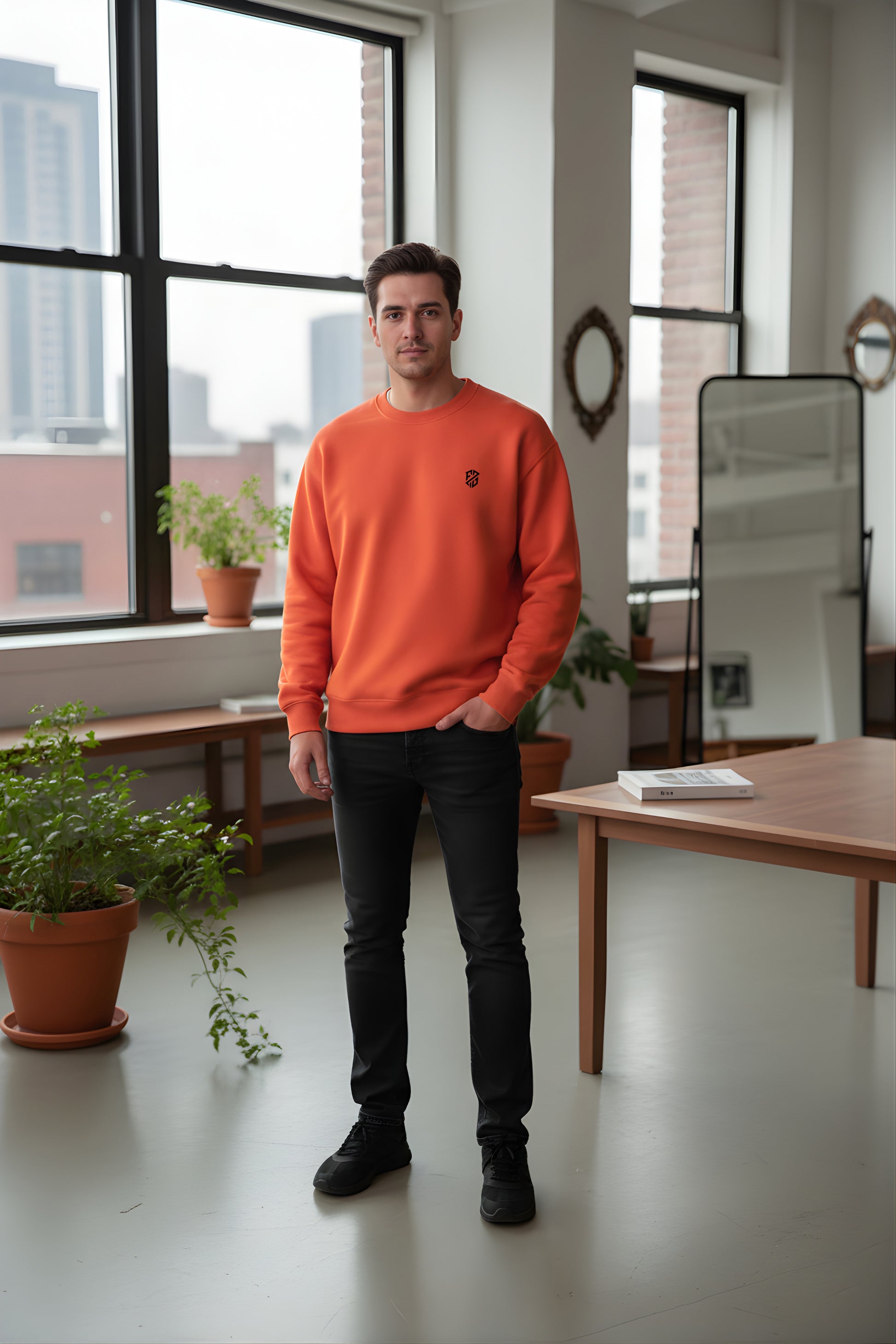 Brighten up your seasonal wardrobe with this Men’s Rust Orange Sweatshirt, the perfect blend of bold color and ultimate comfort. Designed as a Relaxed Fit Orange Pullover, it offers a modern, airy silhouette that is ideal for all-day wear. This Minimalist Crewneck Graphic Sweatshirt is crafted from high-quality, soft-touch fabric, ensuring a cozy feel during cooler months.