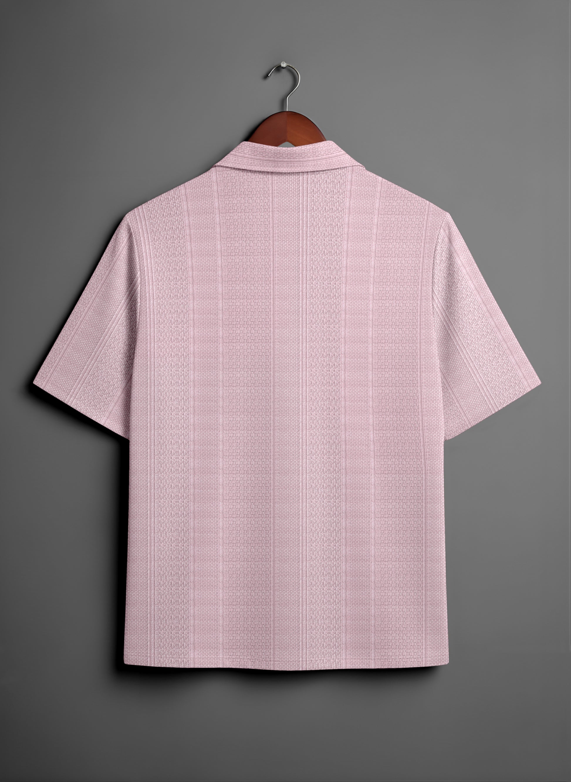 Elevate your seasonal wardrobe with this Pastel Mauve Cuban Collar Shirt, a perfect blend of vintage charm and modern sophistication. Crafted from a premium textured knit fabric, this piece offers a unique tactile finish that stands out from standard cotton shirts. The relaxed fit ensures maximum comfort and breathability, making it an ideal choice for warm-weather outings or layered evening looks.