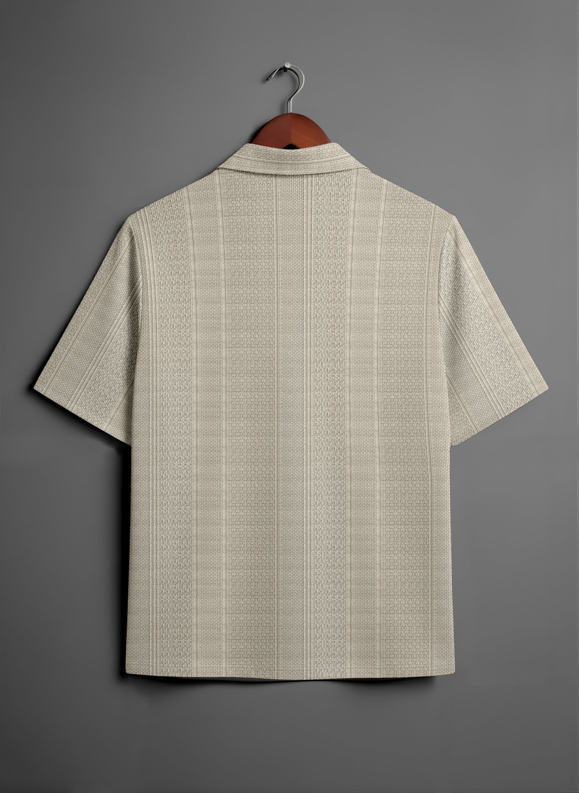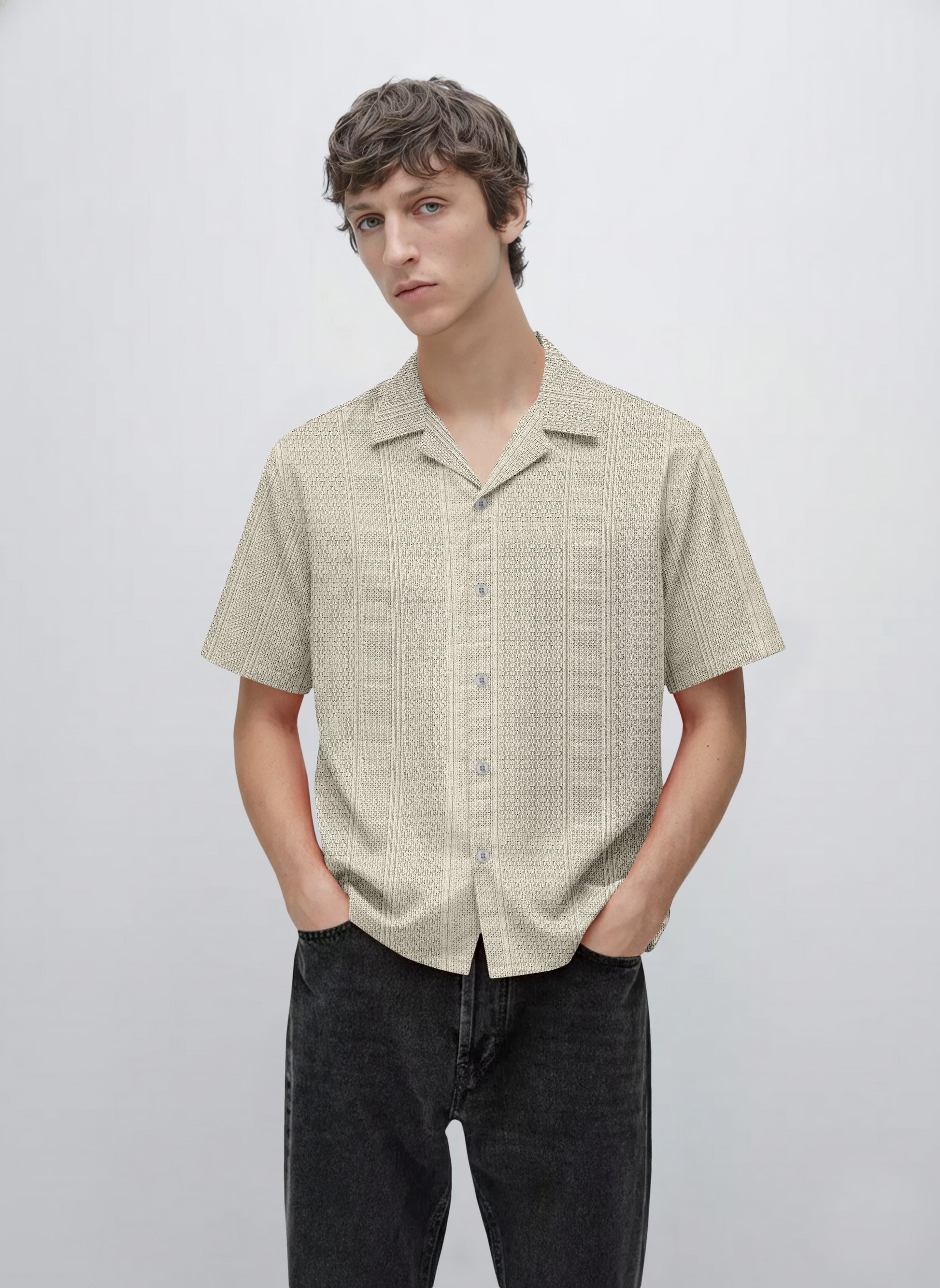 Upgrade your summer wardrobe with our Men's Casual Khaki Short Sleeve Shirt, designed for ultimate breathability and effortless style. This Textured Khaki Resort Wear Shirt features an intricate woven pattern that adds a premium aesthetic to your look. Crafted as a Cuban Collar Khaki Summer Shirt, it offers a relaxed open-neck design that is perfect for beach vacations, tropical getaways, or casual brunch dates.